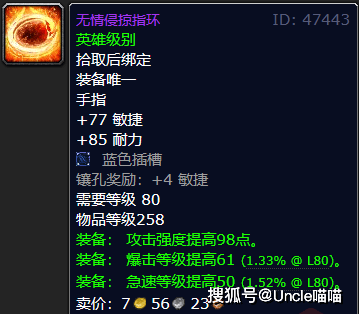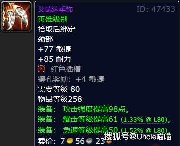 加拉克苏斯大王的此款艾瑞达垂饰项链,横竖都是绝对是极品了,猎人、盗贼、猫德以及增强萨这种无脑入即可啊,甚至可能狂暴战都会要。毕竟这绿字面板的数值真的是太豪华了,而且同样是标配了红色插槽附送4点敏捷,不出意外的话就没有意外,这东西喵叔觉得随随便便上个3万金币没问题吧?各位大兄弟觉得呢?