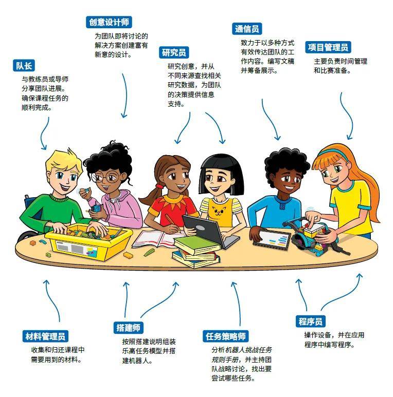 在FLL科创活动中,需组建一支强有力的队伍,携手推进项目的设计、构建与编程工作。