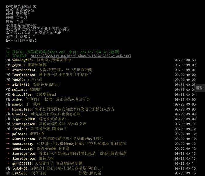 而在面对由噱头衍生出的社群舆情时,《KV》开发团队也没做好对玩家的“服务”,没有以互相交流的态度和玩家沟通,只发书面公告。这也让对《KV》保持长期关注的美少女游戏深度玩家们感到失望,甚至在社交媒体“炎上”《KV》。
