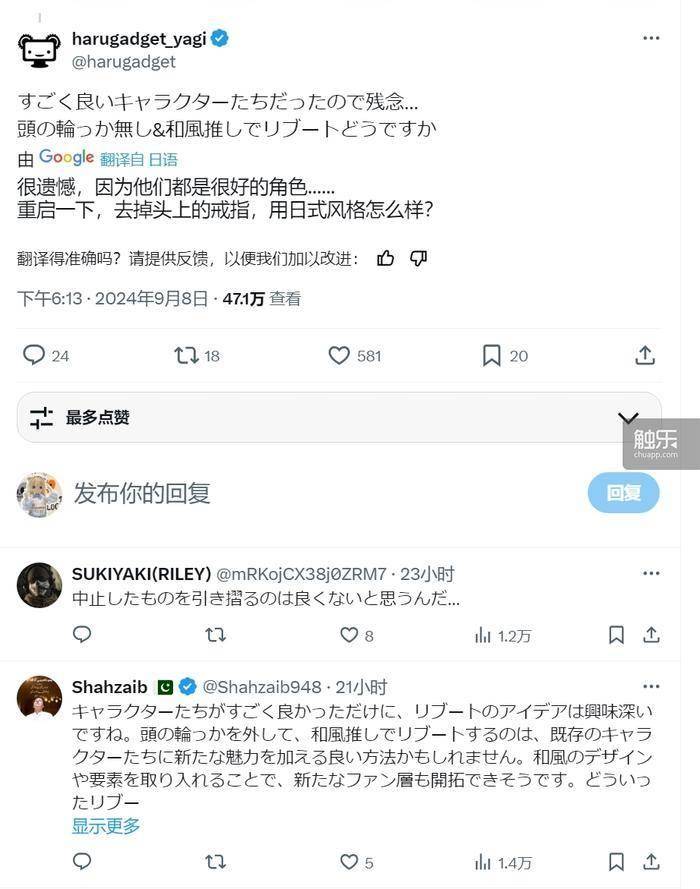 从首发宣传到开发中止,21天内,《KV》在二次元爱好者群体里引起了震动,仅靠玩家自发传播,《KV》在X(前Twitter)上的官方账号粉丝数已达到14万;游戏有将近半个月的时间处于X的“日本地区趋势”上,相关推文有7万多条。在国内,二游相关从业者们也对它投入了不少关注。