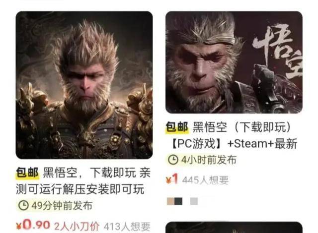 二手平台上的低价盗版黑悟空。图据法治日报作为首个国产3A大作,《黑神话:悟空》的场景设计、故事细节、文化元素等呈现出极高的品质。这样的良心之作,却没有唤醒盗版者和违规商家的良心。某些商家所谓的离线版共享账号,是通过逃避游戏平台的监测“钻空子”登录游戏;低价游戏则往往跳转到其他页面或者根本没法玩,只是用来引流;盗版的游戏周边价格也并不便宜。这些“假猴王”挖空心思,不过是想借着“黑悟空”的热度“盗”走一波利益。