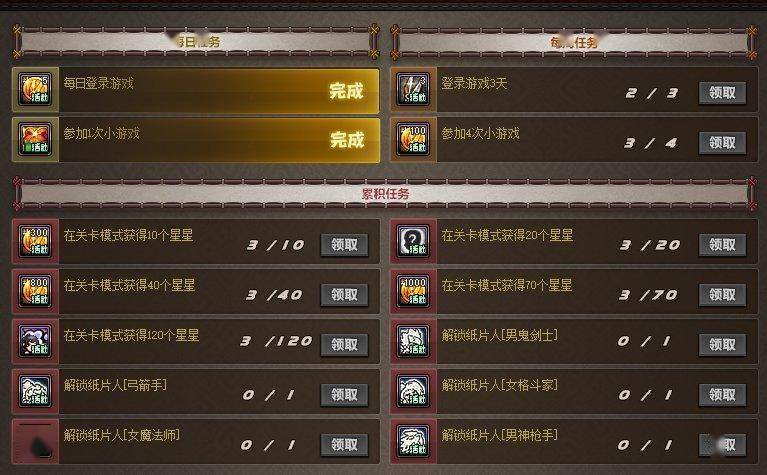 完成每日、每周、累积任务领对应奖励: