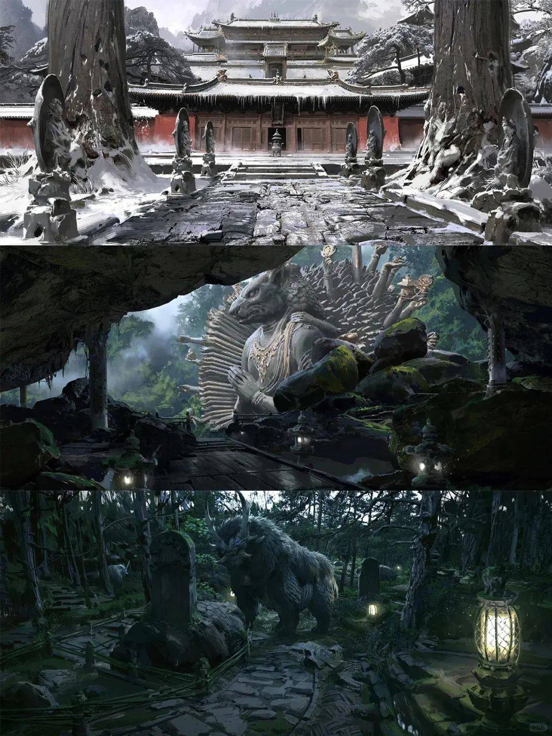 毕业于中国美术学院油画系的国人画师杨奇,在《黑神话悟空》担任美术总监,用他的巧手绘制出了一个又一个令人叹为观止的场景。那些神秘的古寺、幽深的山林、壮丽的宫殿……都仿佛是从他的画笔下跃然而出,让我们仿佛置身于一个真实的神话世界。