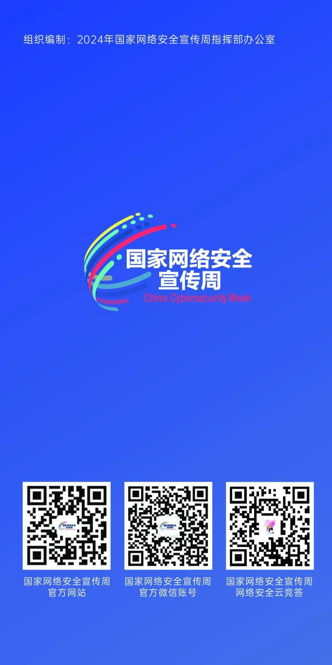 2024年9月9日至15日是国家网络安全宣传周,主题是“网络安全为人民,网络安全靠人民”。