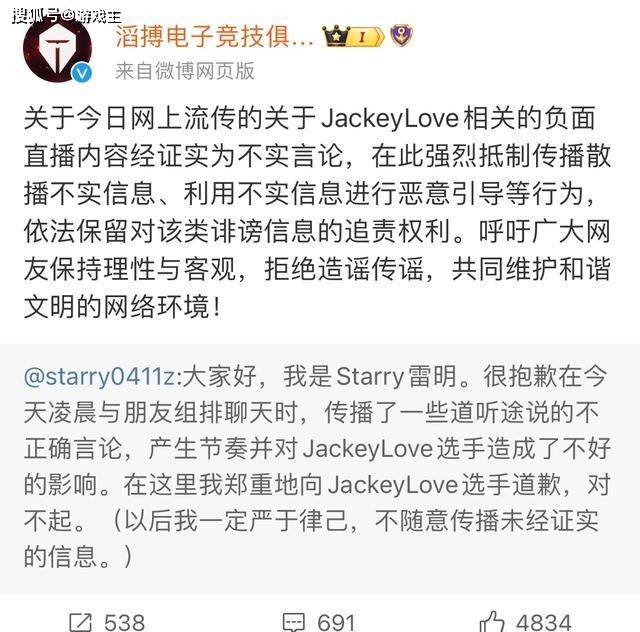 TES战队也回应了JackeyLove谣言:关于JackeyLove相关的负面直播内容经证实为不实言论,在此强烈抵制传播散播不实信息、利用不实信息进行恶意引导等行为,依法保留对该类诽谤信息的追责权利。呼吁广大网友保持理性与客观,拒绝造谣传谣,共同维护和谐文明的网络环境!基本上这个事情也就大结局了,阿水本人并没有做出任何的回应,我相信在这个事情出现之后,战队和联盟官方也做了紧急的公关,毕竟对于这种不实言论肯定是要严厉打击的。