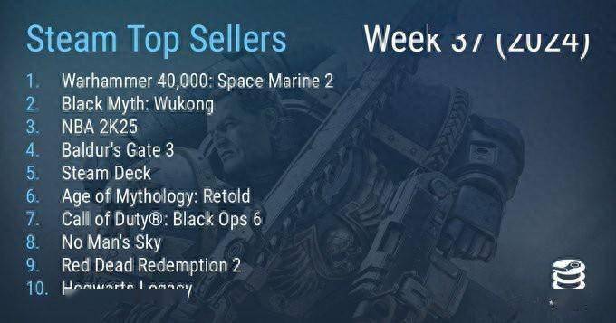 Steam最新一周销量榜出炉(2024年9月3日-2024年9月10日),本周《战锤40K:星际战士2》终结了《黑神话:悟空》的四连冠成功登顶,《黑神话:悟空》则滑落至第二位。