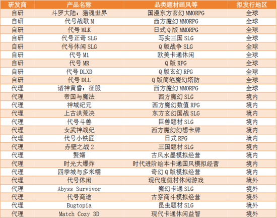 目前,公司已在MMORPG、SLG、卡牌、模拟经营等品类储备丰富的产品。其中,国漫东方玄幻MMORPG《斗罗大陆:猎魂世界》、古风水墨模拟经营《赘婿》、绘本卡通国风模拟经营《时光大爆炸》等多款游戏均已获得国内游戏版号。