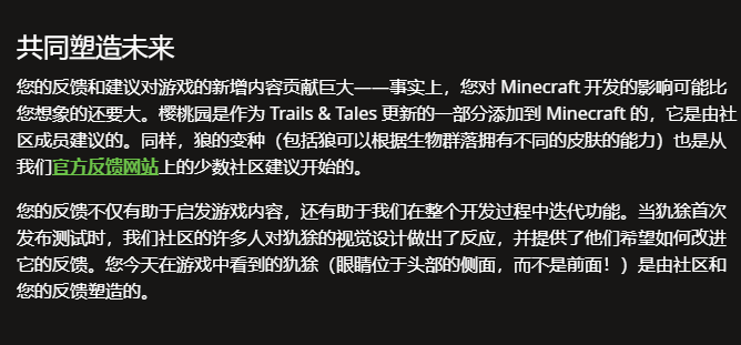 Mojang没有解释为什么玩家抗议爆发一年后才做出这一决定,但在公告的最后,Mojang坦诚地感谢了玩家社区的反馈——意见被聆听、受到尊重和重视,对于希望取消生物投票的玩家来说,这或许是一个超越了“生物投票被取消”的好消息。