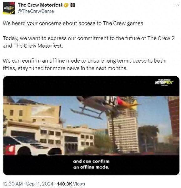 今年早些时候,育碧因关闭《飙酷车神》服务器而饱受批评。近日育碧宣布,《飙酷车神:轰鸣盛典》(The Crew Motorfest)和《飙酷车神2》将添加官方离线模式。