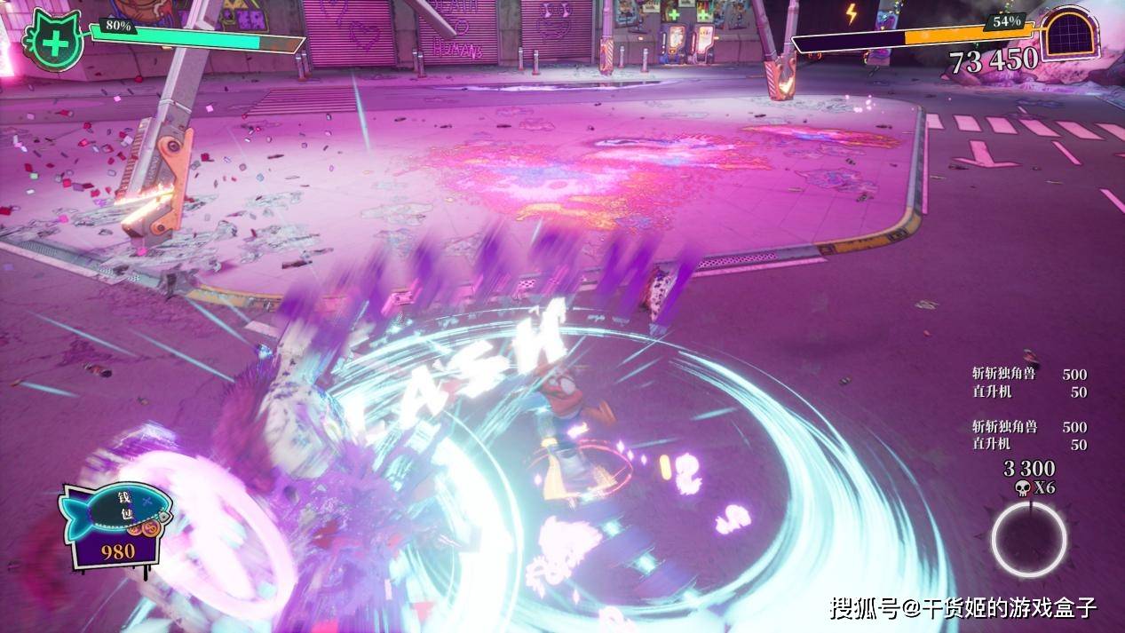 当然游戏的美术风格就像一部相当传统的美式B级片,大量的血浆和残肢断臂让我不禁想到了此类作品的《群尸玩过界》,同样的元素加上同样的搞怪,不得不说此类作品的市场还是不小的,当然对于不太喜欢大量血浆的玩家也可以开启遮蔽模式,把血浆变成各色汽水果汁,看起来会轻松不少,并且在肆意斩杀敌人之外,玩家也可以用滑板来尽情破坏游戏世界中的各种元素,体验到破坏带来的极致快感。