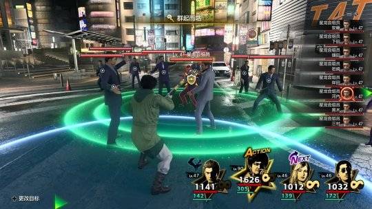 相较前作,《如龙8》的回合制战斗取得了突飞猛进的卓越进步,去除了前作的“站桩式”战斗,并在人物脚底下画了一个大圈,使整个人物的待战斗状态变得更加动态化。玩家可以在角色脚下的蓝色大圈内进行有效范围的移动,并通过直观的范围UI指引来调整角色的站位,从而决定出招的方向。此外,前作的QTE系统在《如龙8》也被完美继承。最让人惊喜的是,作为对于传奇主角的致敬,桐生一马可以积累并爆发友情能量,将战斗短暂变回即时制操作,在限定时间内可以自由攻击敌人,再现堂岛之龙一夫当关万夫莫开的雄风。