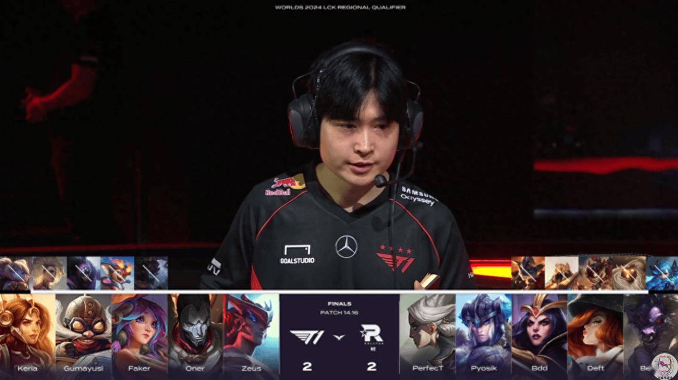 在BDD的永恩发挥太过出色,T1和KT进入决胜局之后,T1终于是想明白了,直接蓝色方一抢了永恩。因为Faker和Zeus都会玩这个英雄,所以这是他们作为摇摆位最有价值的选择。在KT亮出卡蜜尔之后,T1也是让永恩走上,Faker选择飞机。BDD虽然想复刻Showmaker的妖姬秀,但很可惜这局因为救打野反打失败一波直接崩盘。