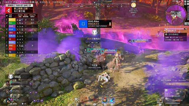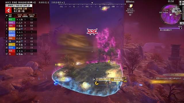 上一双周周决狼队上演三排最速传说也是引起了其他队伍的重视,就是地脉仪的争夺一定要主动一些。在今日第一把狼队就是这样,只要有机会抢就非常的果断,于是在首日比赛中狼队再次拿到白虎之力完成清场!而BBE这一边,前两把发挥一般,但是到了第三把就开始发力了。在最关键的地脉仪争夺中,OUG虽然成功拿到了白虎之力,但是BBE完美的一波配合,直接将OUG全队淘汰,随后开启了他们的收割,拿到本场最高分。