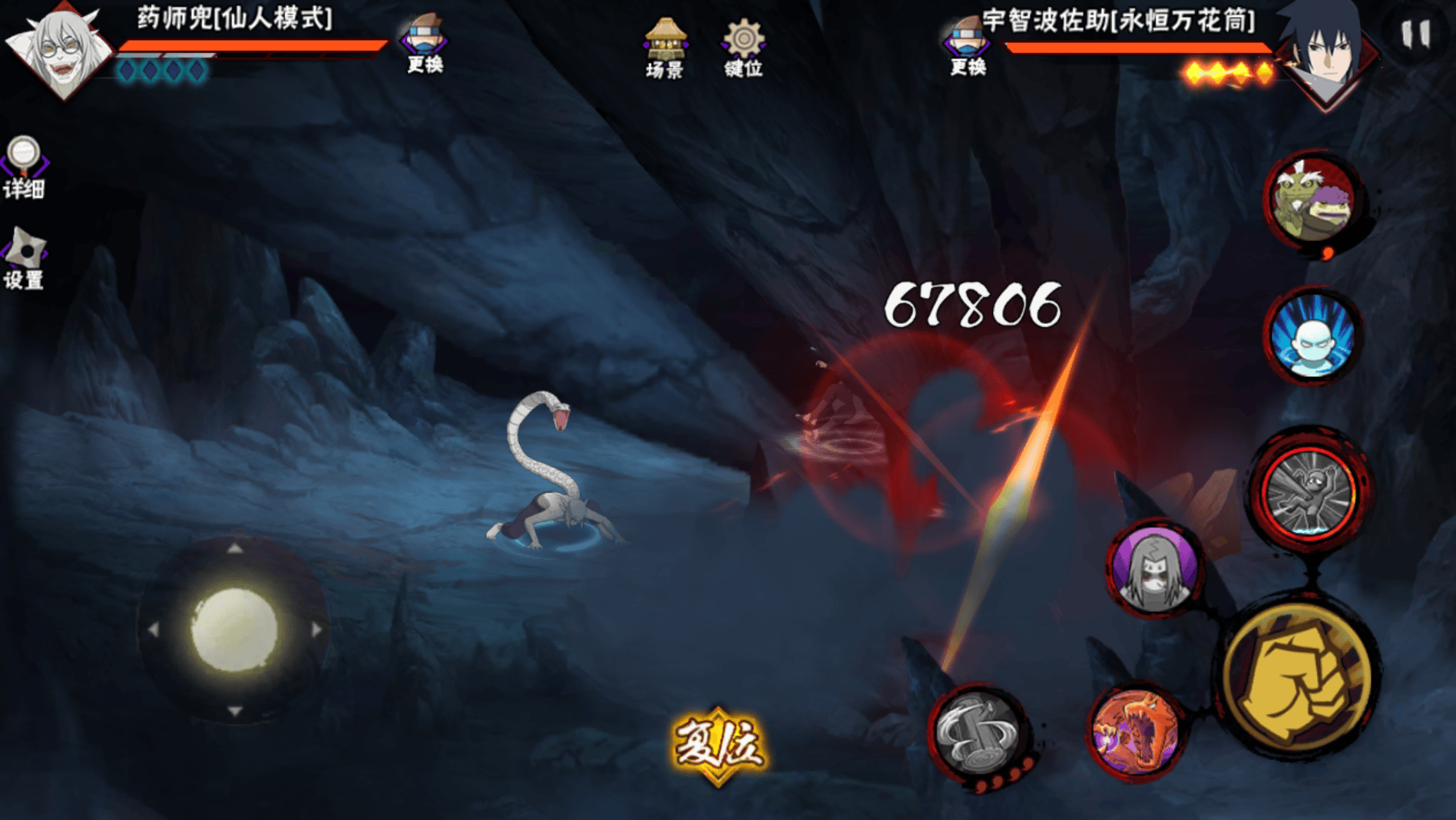 黑夜模式下的10秒CD大蛇丸挺好用,无敌加位移,可以把对方带出通灵范围。巅峰时期的多由也单个子技能抓取时间就很久,现在需要搭配另外一个子技能才可以消耗满级霸体。只不过这两个黑夜模式下的技能效果只是应对不同的场景,真正放到实战中,你还是需要面对伤害输出速度慢的问题。除非是拿满四豆,利用奥义接技能拉伤害。