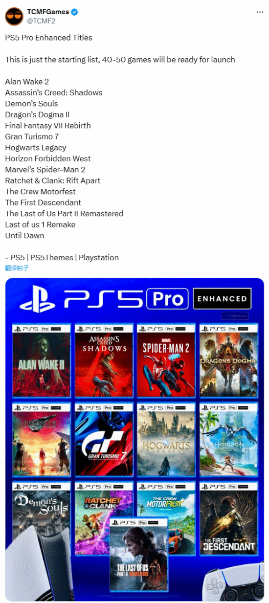 此外,还有几款未确定是否为增强版游戏的名单也出现在了汇总中。根据 TCZF 的分析,这些增强版游戏应该是针对PS5 Pro进行优化和改进后的新版本。对于这些增强版游戏,玩家们期待着能有更多细节的公开。