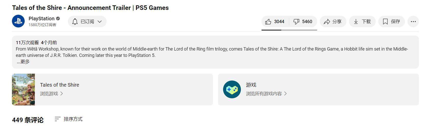 实际上,《指环王:夏尔的传说》四个月前的首支预告片就已经很不待见,PlayStation油管频道有超过5000个差评: