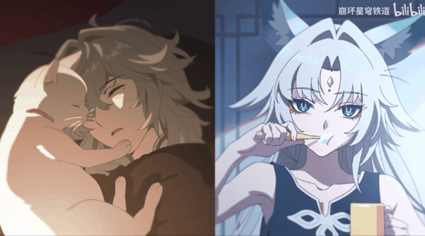 当然,除此之外我同样喜欢的,还有这次随着几支PV一同发布的,介绍景元与飞霄两个将军每天起床后不同作息习惯的动画短片《清闲自在身》。