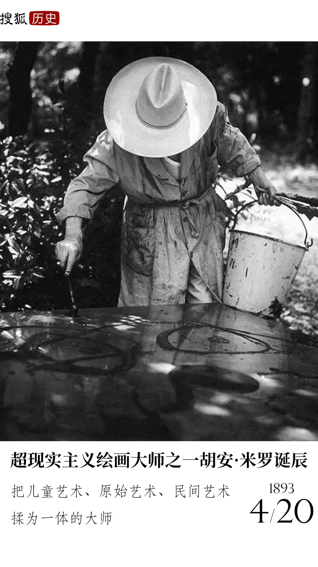 1893年4月20日, 和毕加索、达利齐名的超现实主义绘画大师之一胡安·米罗出生。