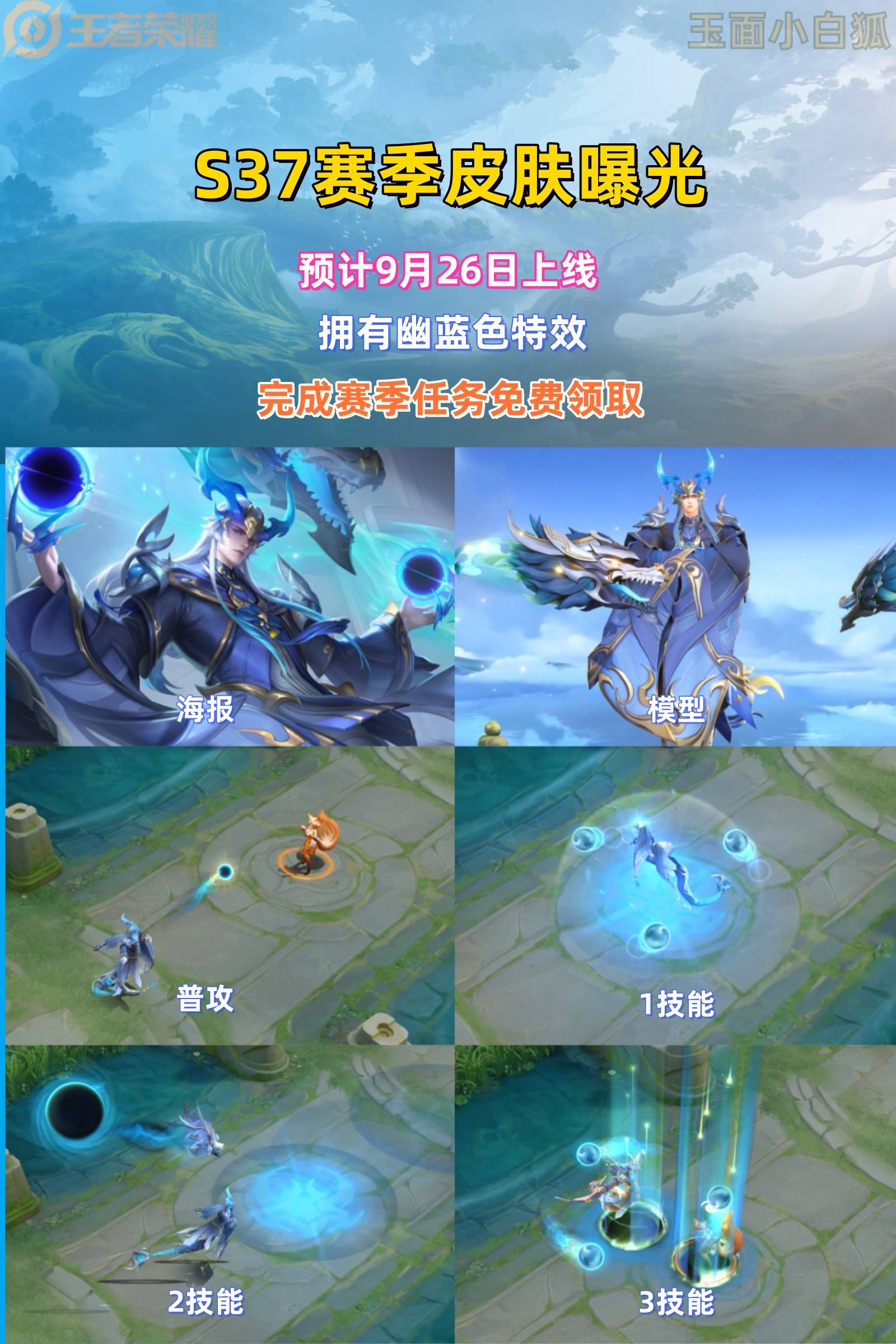 东皇太一S37赛季皮肤正式曝光,预计将在9月26日上线,拥有幽蓝色特效,完成赛季任务免费领取。