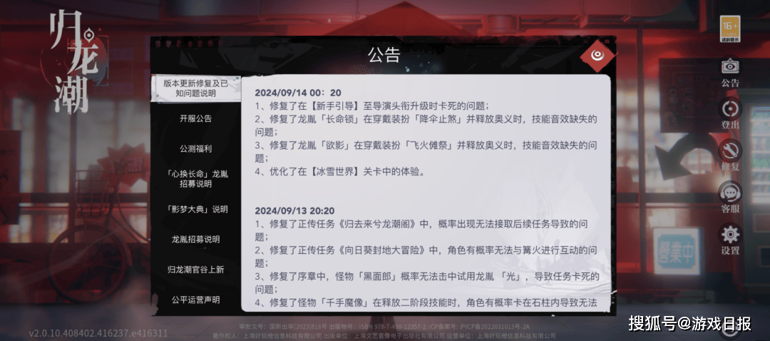 它也更听《归龙潮》玩家的劝,翻看这两天上线后的更新公告,半夜0点20分还在修BUG、做优化,像是大家第一天集中说到的冰雪神女关卡的触手追踪体验问题,第二天就做了调整,之后又进一步优化,第一时间保证玩家能相对轻松地玩爽。