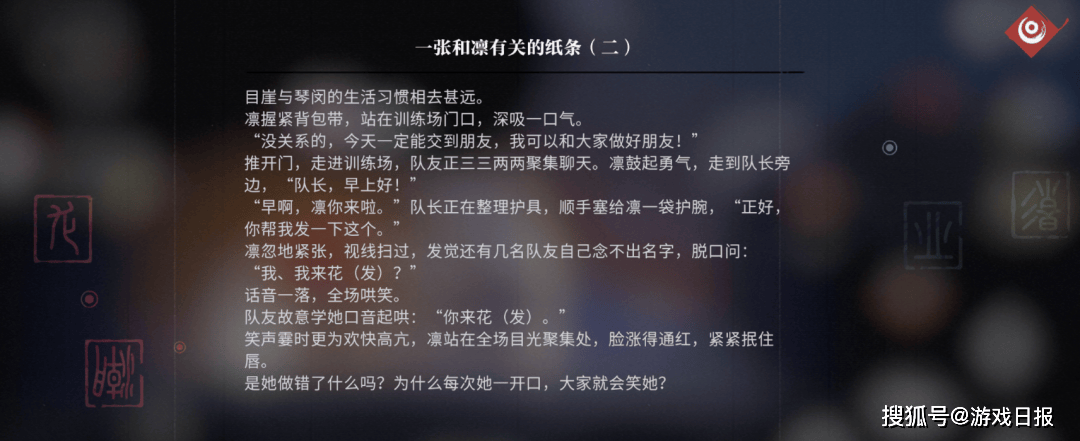 更深挖些,这些场景也在对应角色人设与故事的丰满,比如“长命锁”的性格是怎么养成的,再比如“凛”过往的经历(从琴闵区搬到目崖被同学嘲笑,又搬到了中浦)……