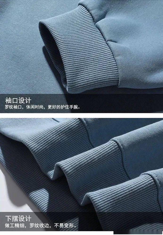 卫衣面料表面是微磨毛,采用棉和聚酯纤维的搭配组成,摸起来光滑柔软。