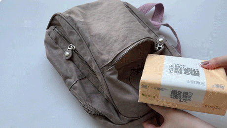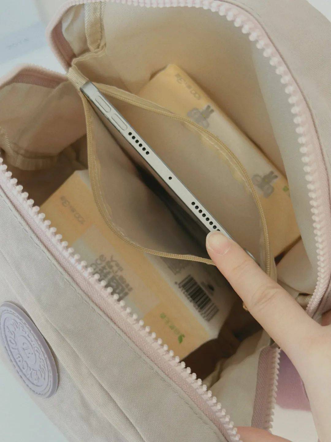 出门很多频繁要使用的东西各有各的去处,比如擦手擦嘴擦一切、出场率超高的纸巾,放在两侧口袋就很方便拿取,不怕被其他物品弄脏。