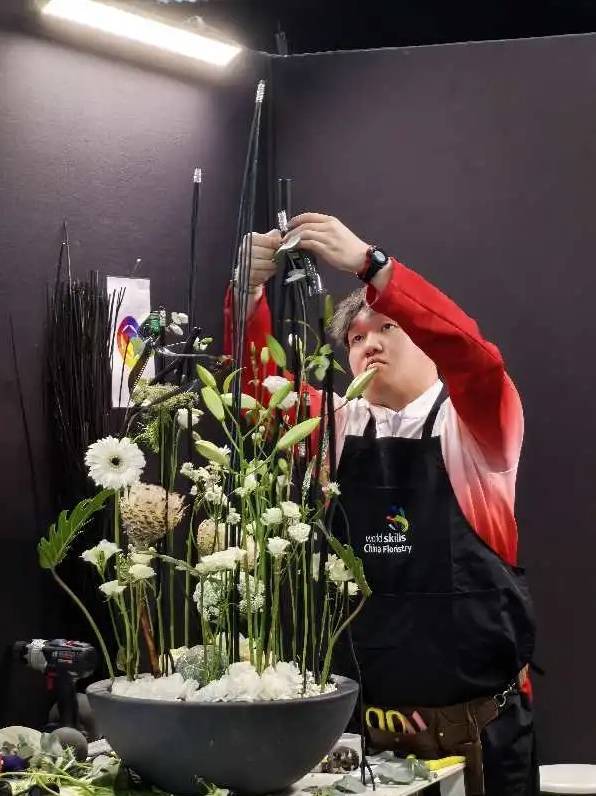世赛花艺项目,不仅有细节处的较量,还比拼创意,同时考验选手的临场应变能力。本届世赛的花艺项目竞争尤其激烈,共有来自20个国家和地区的选手参赛,通过切花装饰、花束、新娘花饰设计、植物种植设计及神秘箱制作等五个环节的考验,展现了每一位选手非凡的技艺与创造力。蒋兆珩处变不惊,克服了重重压力。