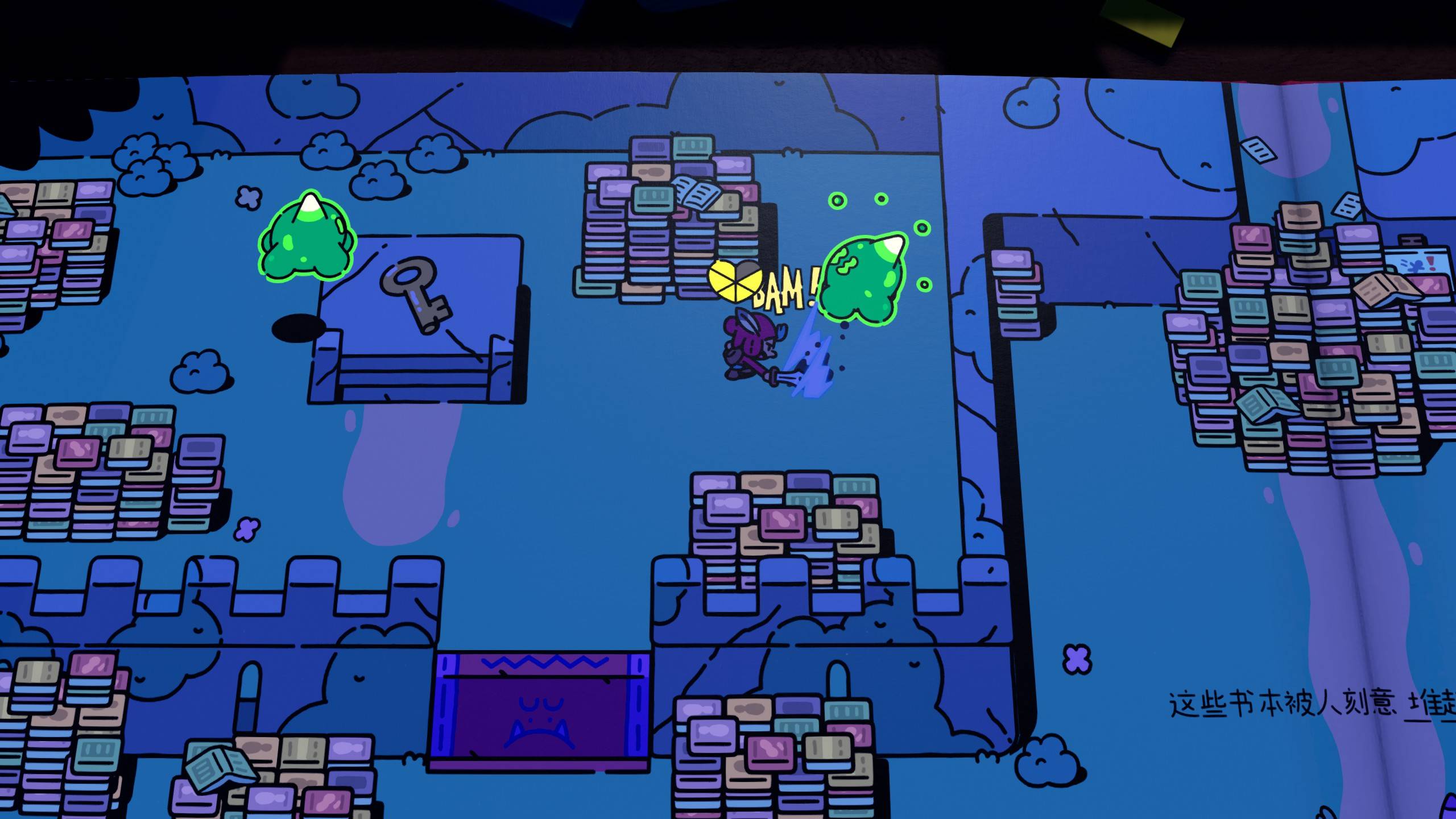 在《勇敢小骑士》这本2D绘本中冒险的时候,一页通常代表着一个新的关卡,但在进入一个主题场景比如沼泽后,书本通常翻上许多页都进入不了下个主题场景,就是因为其中的关卡设置得太多,而且大部分关卡的内容也大差不差,导致玩家获得不了太多持续的新鲜感。