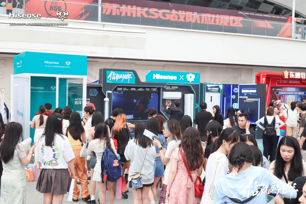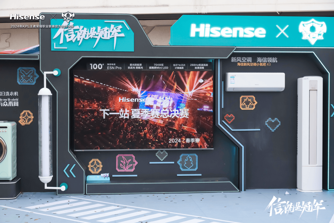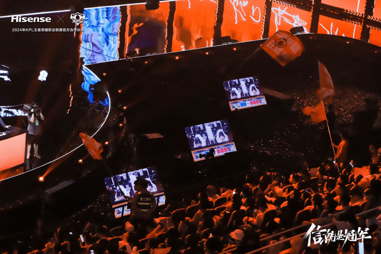 作为此次KPL夏季赛的重要技术支持,海信特别提供了30台E5N Pro电视作为现场显示设备。其中,12台100吋E5N Pro电视为内场前排观众带来了前所未有的观赛体验。超高清画质与震撼的音效系统相结合,使得每一个精彩瞬间都能被精准捕捉并完美呈现,极大地提升了现场观众的观赛参与感和沉浸感,仿佛置身比赛现场中心,与选手同呼吸共命运;