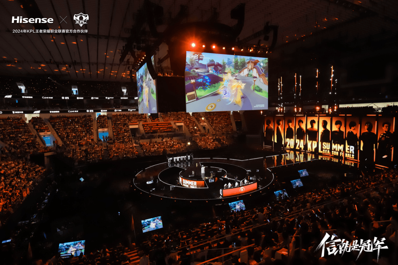 作为此次KPL夏季赛的重要技术支持,海信电视E5N Pro凭借其卓越的显示技术和音效表现,在电竞场景中展现出巨大的优势。100吋超大屏幕配备4K超高清分辨率,带来了细腻逼真的画质表现,每一帧画面都栩栩如生。尤其是在冠军诞生的关键时刻,E5N Pro电视的MEMC运动补偿技术完美消除了动态模糊,当金色雨倾泻而下,为冠军战队加冕的那一刻,E5N Pro电视不仅是比赛画面的载体,更是这一荣耀时刻的见证者。