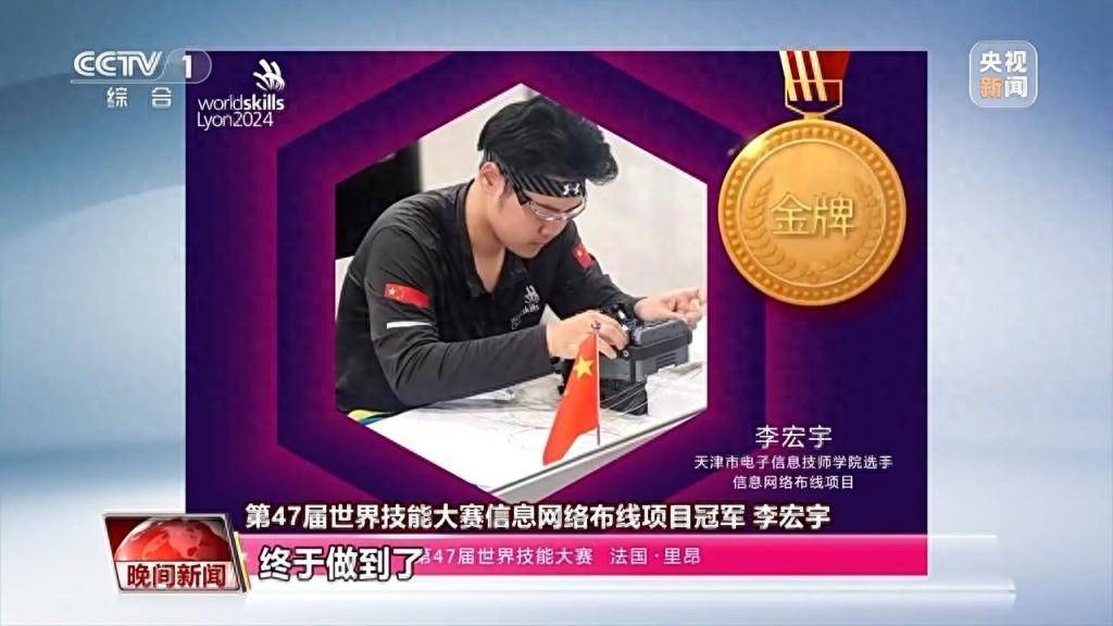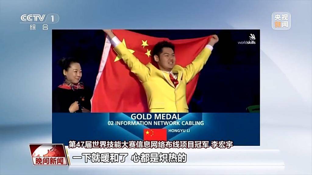 第47届世界技能大赛信息网络布线项目冠军 李宏宇:我们努力这么多年,终于做到了,打破了日本金牌的垄断。