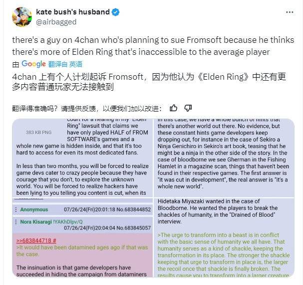 但无论是隐藏内容,还是游戏的高难度,对《艾尔登法环》这类魂游来说都算是自身特色。因难度过高为由来提起诉讼,真的很难有说服力。至于具体情况如何,还是看接下来法院给出的反馈吧。
