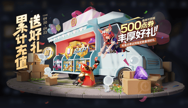 累计充值活动将在9月20日开启,第五个档位送回城:爱心气球或虎啸风生。