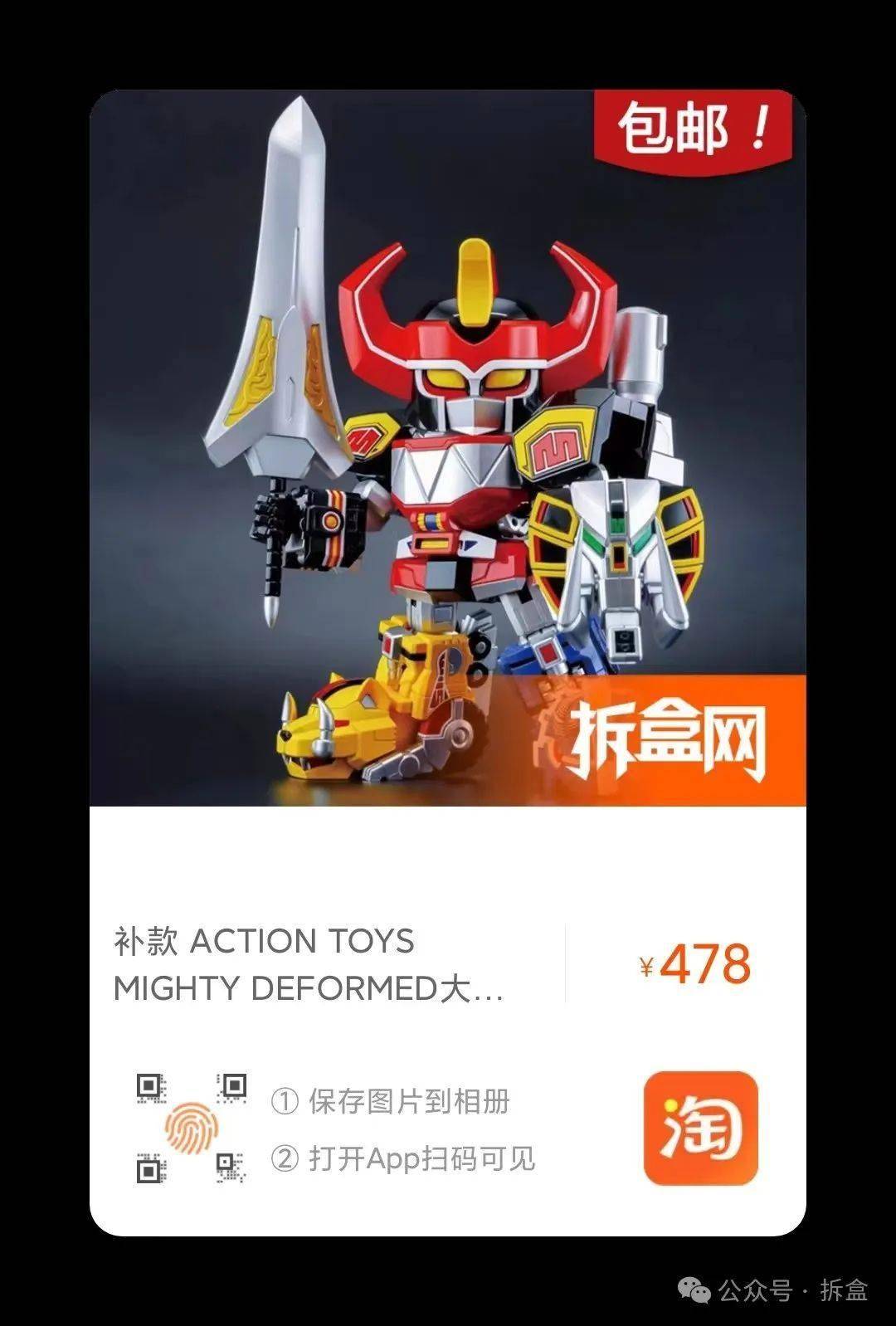 请大家自行认领到拆盒网淘宝店补款!