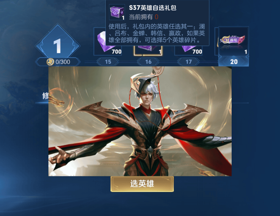 此外,在抢先服S37赛季中,赛季任务里居然免费送嬴政和韩信了,只需要玩家将赛季等级提升至16级,即可免费领取永久英雄自选宝箱,宝箱内就有嬴政、韩信、金蝉、吕布、澜这五位英雄,个人建议先拿嬴政。