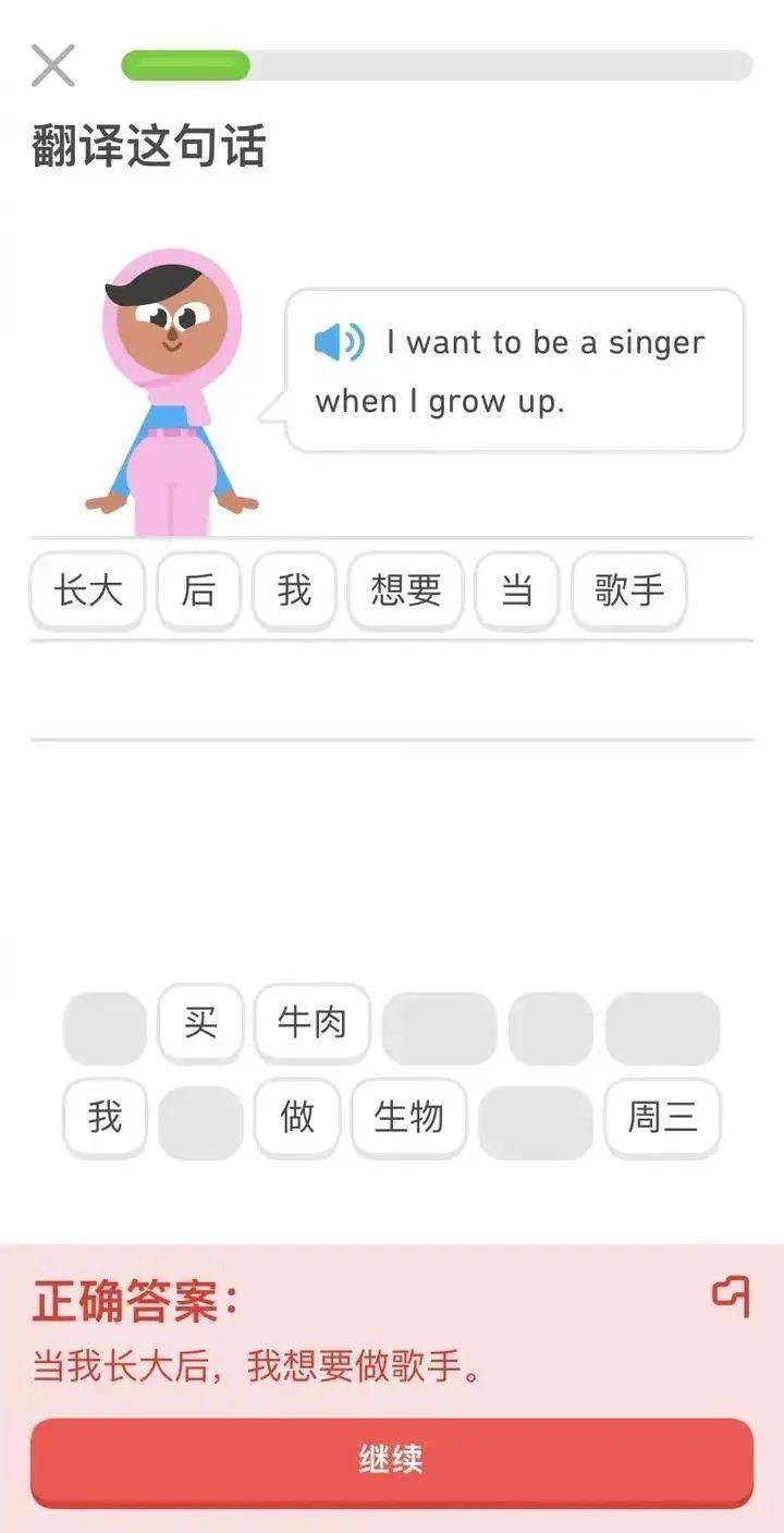 神奇的社区氛围让人在软件之外寻求愉悦的群体慰藉,而软件内,多邻国把学习的成就感调和得恰当好处。就像我永远无法忘记,在刚使用这个软件,仅仅只是答对了简简单单的“一”“二”“三”的日语单词,也在“泰裤辣!”的声声赞美中觉得自己做成了一件多么了不起的事。