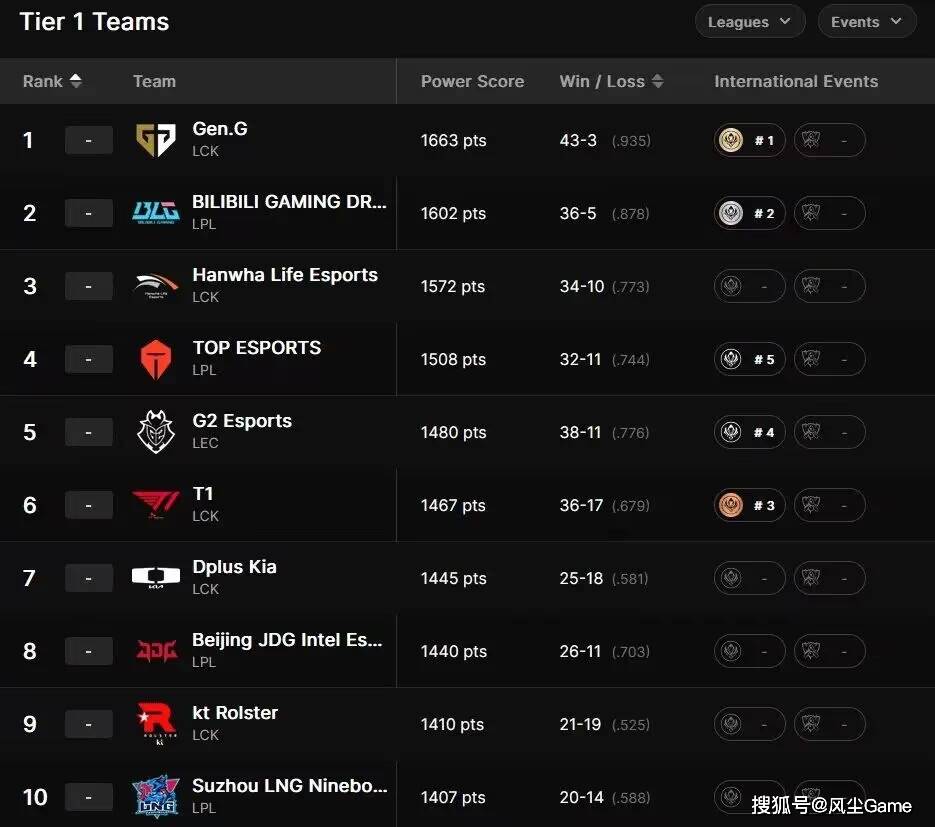 世界赛马上就要开打了,拳头官方在近日,也是发布了S14全球战队战力排名,一些没进世界赛的队伍,也被排了进去,但咱们主要看的,是今年打世界赛的队伍,榜首毫无悬念,Gen虽然夏季赛折戟了,但综合实力,还是排在第一的,而位列第二名的,是LPL的最强全华班BLG战队。