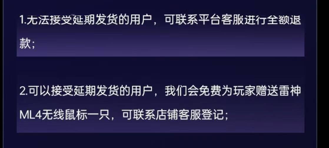 可以接受延期发货的用户,我们会额外赠送雷神 ML4 鼠标一只