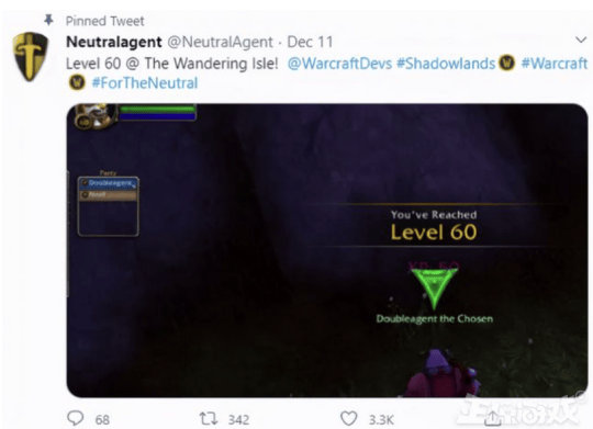 然鹅,在最近的魔兽11.0中,这位传奇的Doubleagent却被“钞能力”给打败了,与全球首个在新版本达成满级中立熊猫人荣誉失之交臂。