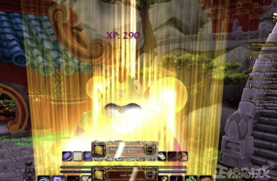 在这个点子冒出来之后,Doubleagent心里的骚想法就一发不可收拾了。考虑到熊猫人本身就是热爱和平的种族,因此他又给自己的练级之旅增加了一个限定条件,那便是不击杀任何一个怪物。