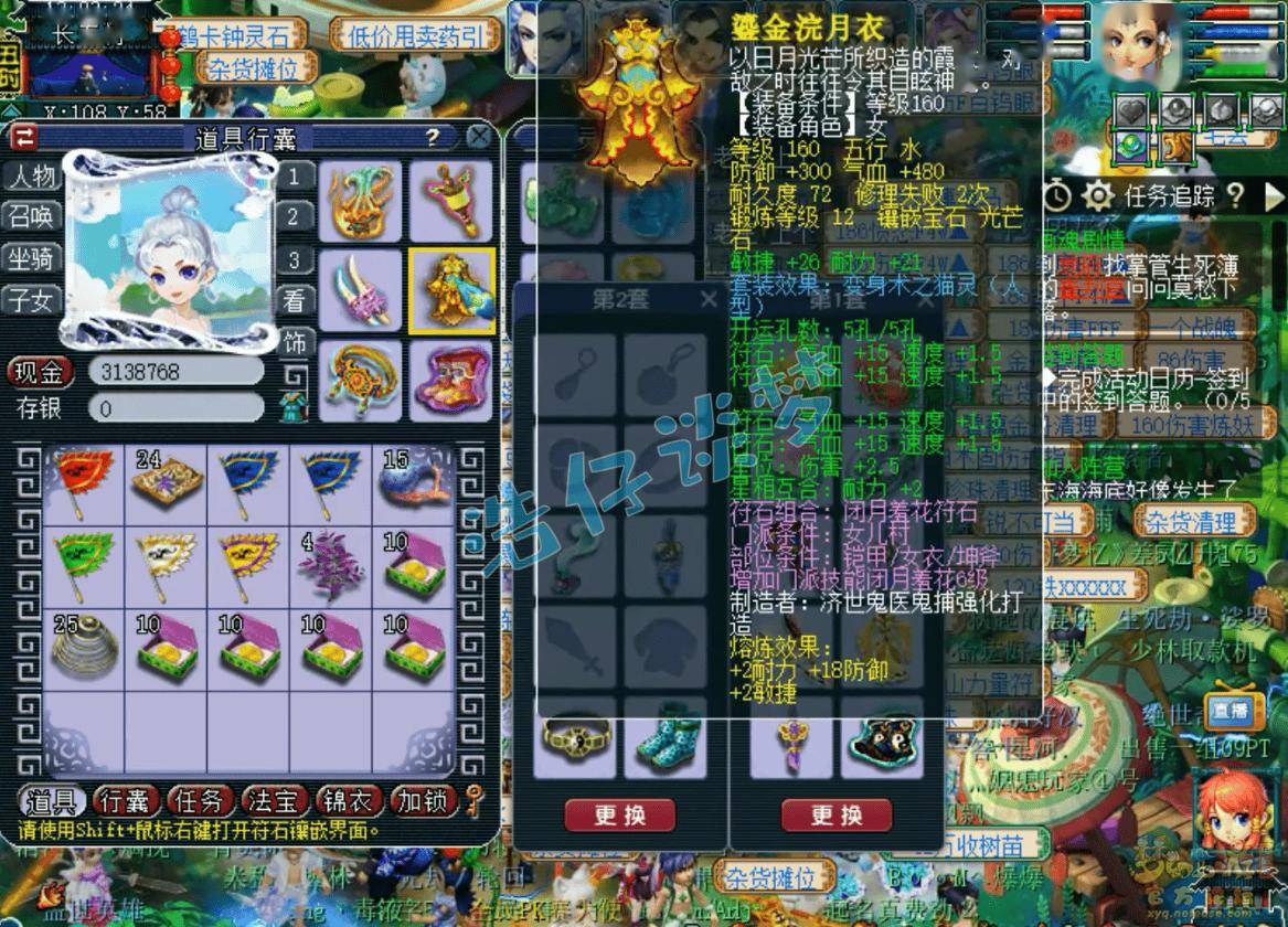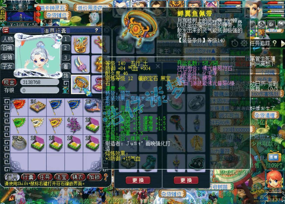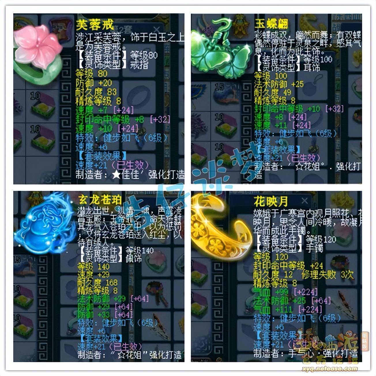 戒指和耳饰下排都是双速度一封印,配饰下排双防御一法防,手镯下排双气血一法防,全部打了8锻星辉石,特效6级健步如飞!