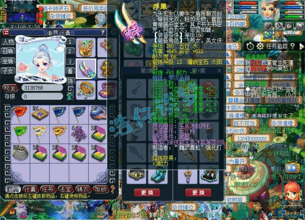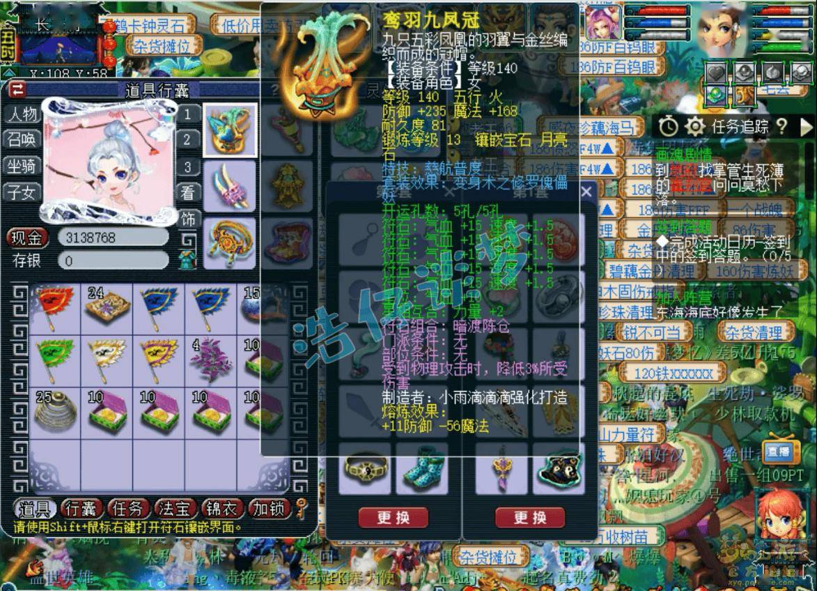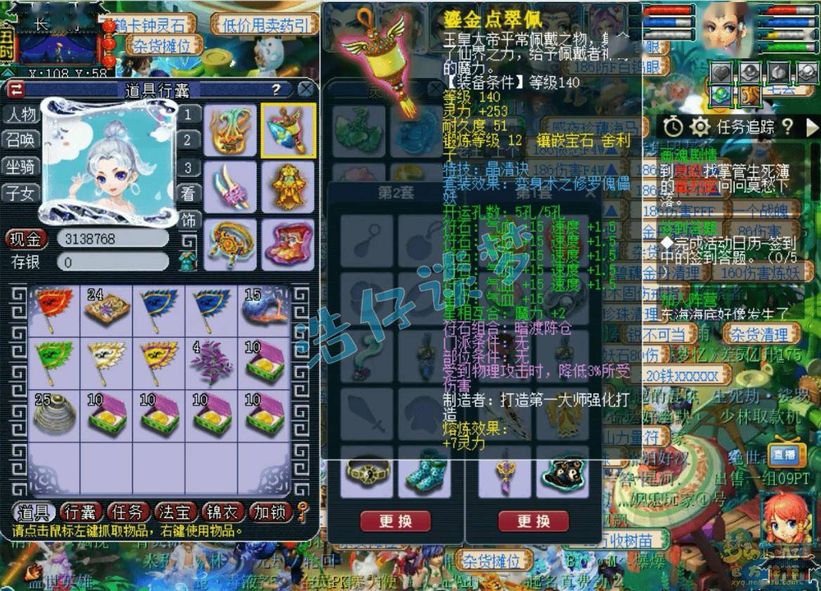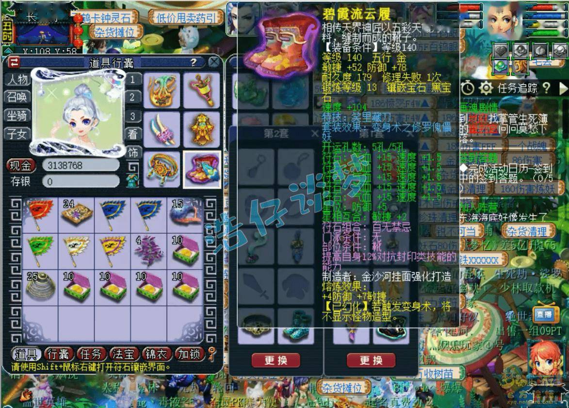 戒指和耳饰下排都是双速度一封印,配饰下排双防御一法防,手镯下排双气血一法防,全部打了8锻星辉石,特效6级健步如飞!