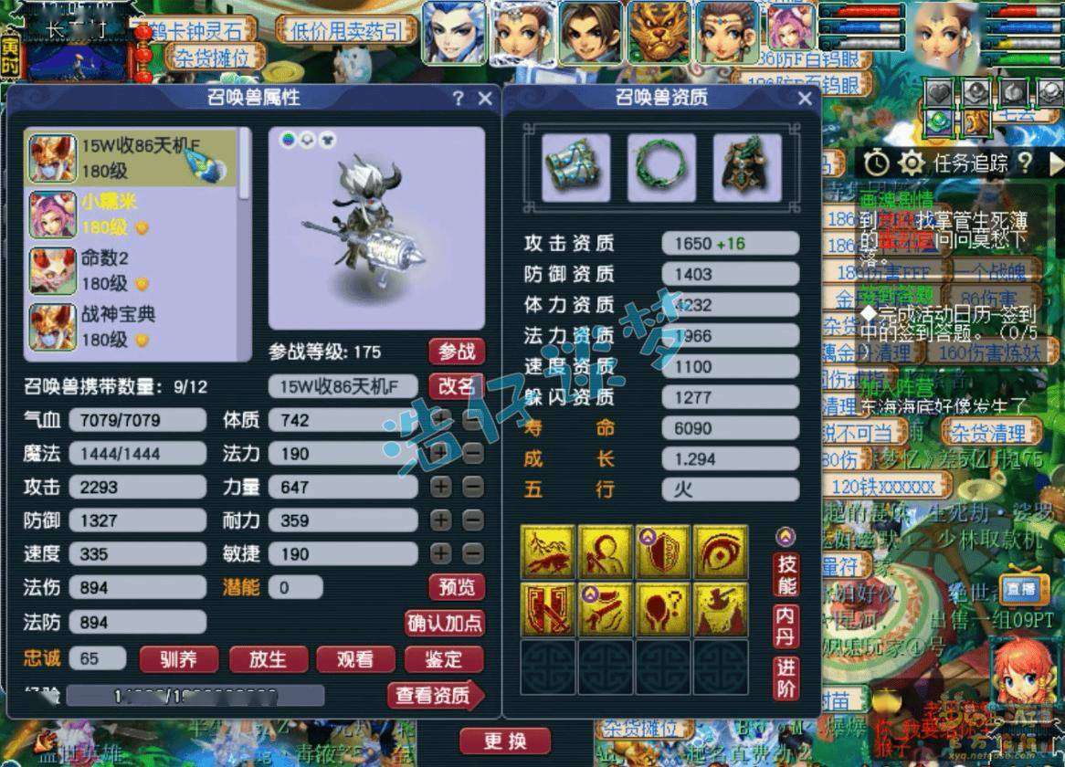 好了,这个175级女儿村展示完毕,装备搭配还是很不错的,该有的特技都有,宝宝也很齐全,主打一个性价比!这种号虽然不能跟顶级服战大佬比,但是在帮派联赛中绝对称得上主力了,也是各种阵容争抢的香饽饽,各位觉得呢?