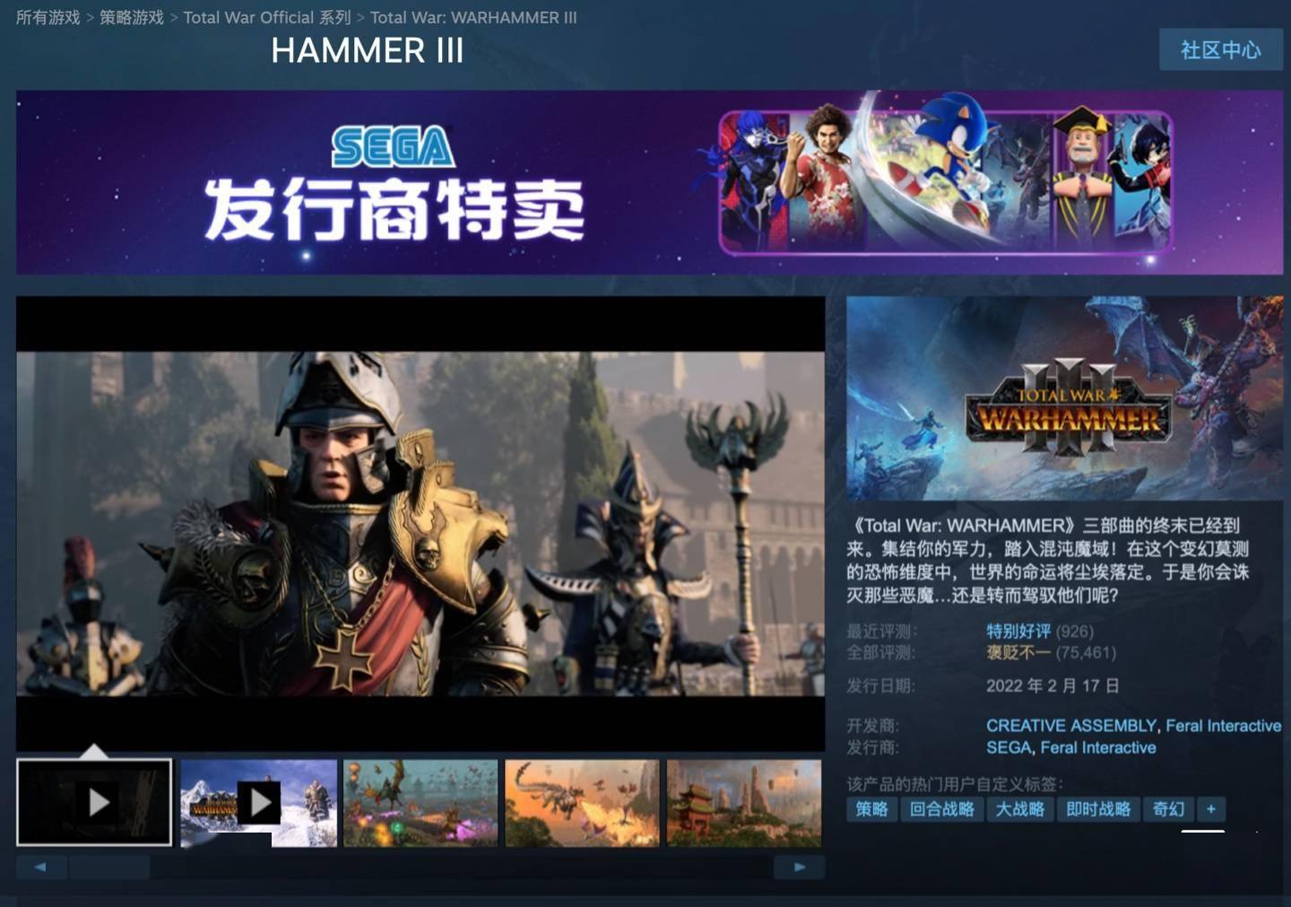 据介绍,《全面战争:战锤 3》依旧继承系列特色,集合回合制战旗策略与即时战略的玩法于一体,本作于2022年2月17日登陆Steam平台,现游戏好评率69%“褒贬不一”,游戏支持简体中文。