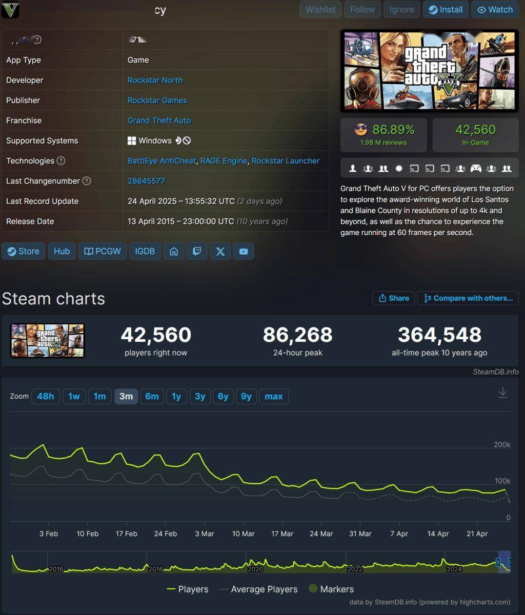 值得注意的是,《GTA 5》近期在游戏订阅服务上也发生了变化,退出了PlayStation Plus订阅库,转而加入了Xbox Game Pass。这一变动为PC玩家提供了除Steam之外的另一个游戏获取渠道,但并未对Steam平台上原版与增强版的玩家数量对比产生直接影响。