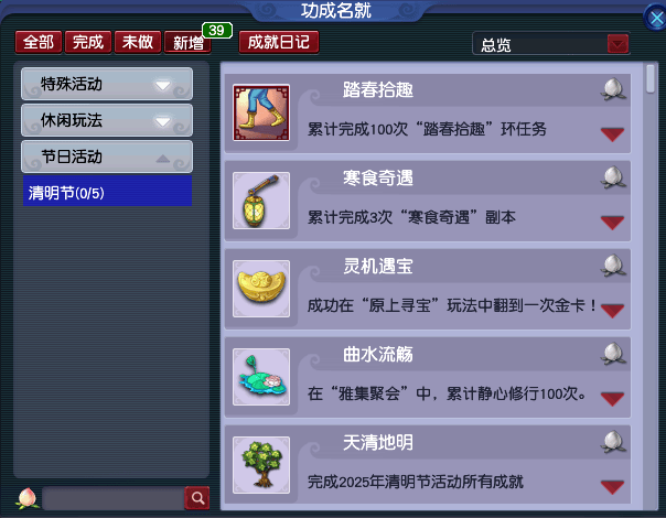 本次清明节活动成就较为简单,需要参与100次环任务、完成3次小副本、在原上寻宝中翻到一次金卡、挂机100次,全部完成的话至少需要3天时间。不过,这次的成就点只有一点,各位喜欢刷成就的小伙伴可以根据自己时间自由选择。
