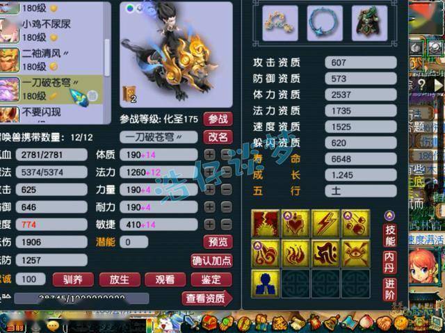 10技能净台壁垒血攻童子,赐福了4个超级技能,成长资质再养一养就完美了。