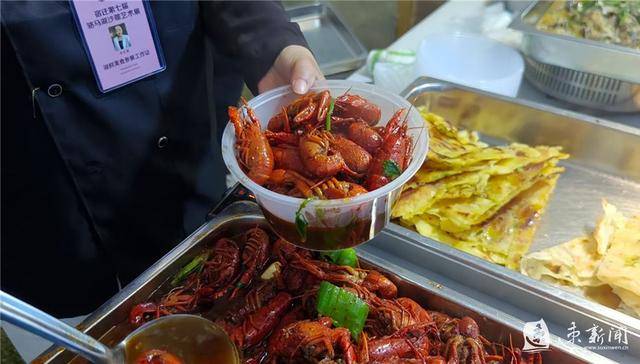 当烟火音浪碰上美食市集,骆马湖瞬间染上“舌尖宿迁”的味道!暖灯下,滚烫的油锅升起一阵白烟,鲜活的小龙虾瞬间激起一层鲜艳的红,商家朱虹颖用勺子在锅中不停地翻搅,顾客排起了长队。“我们准备了50斤的活虾,现场进行烧制。除了龙虾,我们还烧制了瓦块鱼、小鱼锅贴等宿迁美食,让外地游客也能品尝到宿迁味道。”朱虹颖说。