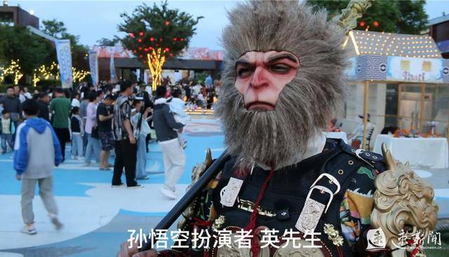 扮演《黑神话:悟空》中主角孙悟空的英先生成为现场焦点,不少游客争着跟他合照。英先生告诉笔者,他这身造型在两个人的帮忙下,需要40分钟才能穿戴好。不难发现,这场活动的每一个NPC都奉上了最大的诚意。
